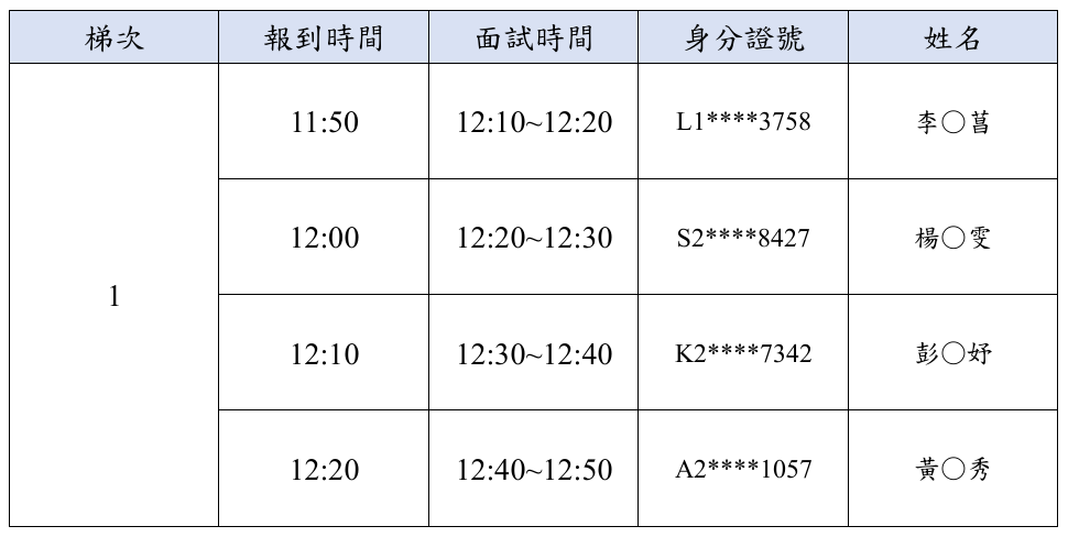 - 考生請按准考證號依序應試,逾時視同放棄。